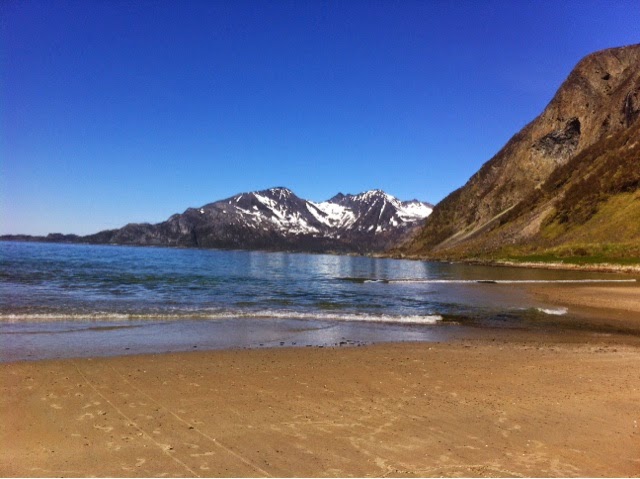 With snow capped mountains in the background this was easily in my top 5 beaches visited of all time. As I looked out onto the water, Geir informed my that if I sailed a steady course from the beach I would reach Alaska... Amazing!